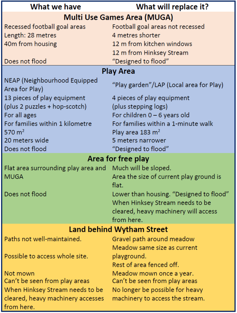 2005: The developers of flats on the Rivermede site were exempted from the need to provide a play area because of the close proximity of Bertie Park. We understand that the developers provided funding for St Luke’s. Moving the recreation onto the land behind Wytham street would make the park more than 400m away and (according to OCC) no longer within easy walking distance for families living in the flats.