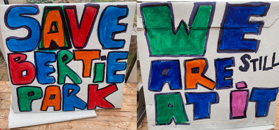 24 January 2024: We have been told that the Bertie Park development is expected to go to planning committee in January – before the appropriation. This will be confirmed one week before… Could this be so that we can’t leaflet the area and get people to go and watch them make their decision? Hmmm ….